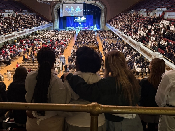 Before the mass began, Damascus Worship, a missionary movement devoted to bringing revival to the Catholic Church, led the crowd in upbeat praise and worship. Students sang, clapped, and even danced in their seats.