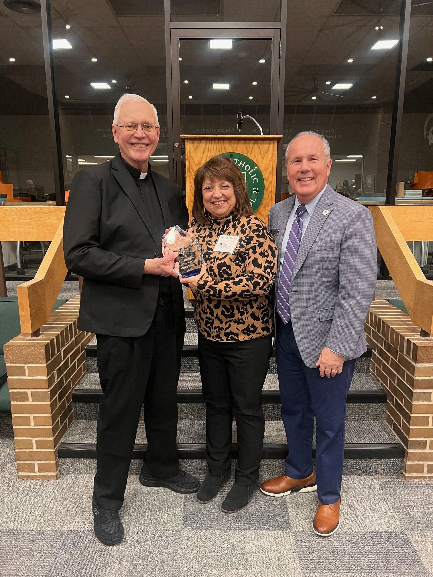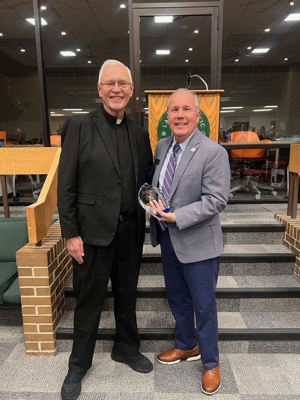 Morabeto then took to the podium and, before presenting the award to Fr. John, thanked everyone in attendance for their continued partnership with Lake Catholic as the school continues its forward-moving momentum.