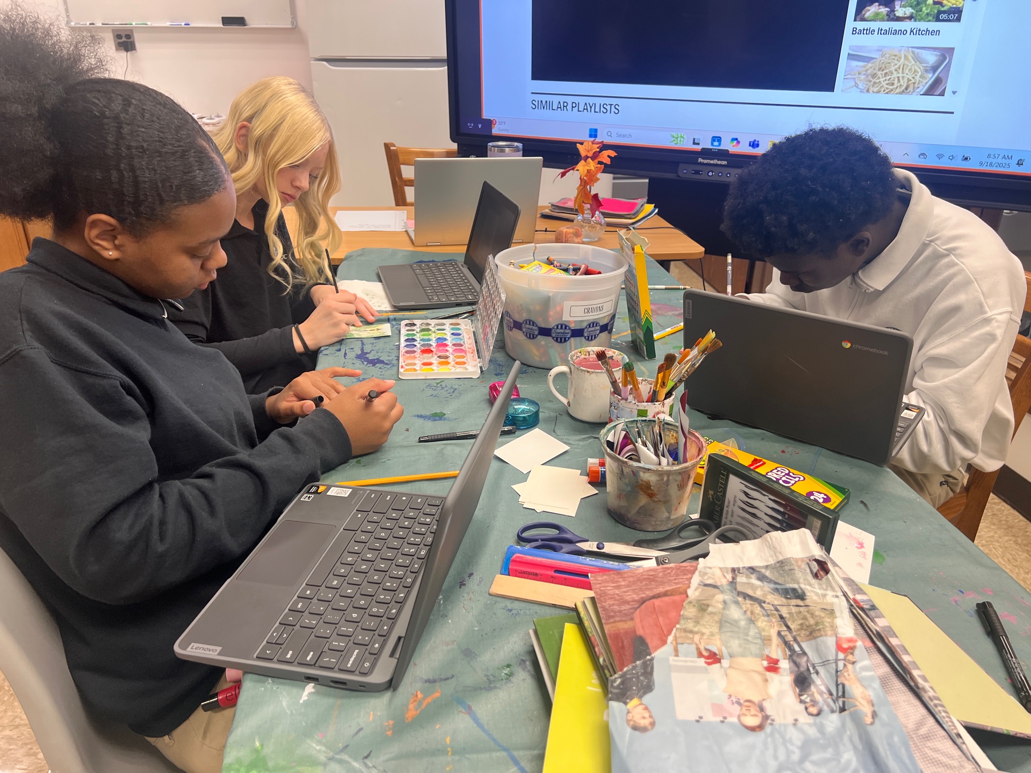 - Ms. Kane (art) and Mrs. Gainar's (culinary arts) group worked on two projects - students prepared a meal similar to the book and got to eat it together and also created trading cards based on the book’s characters, locations, and other items.