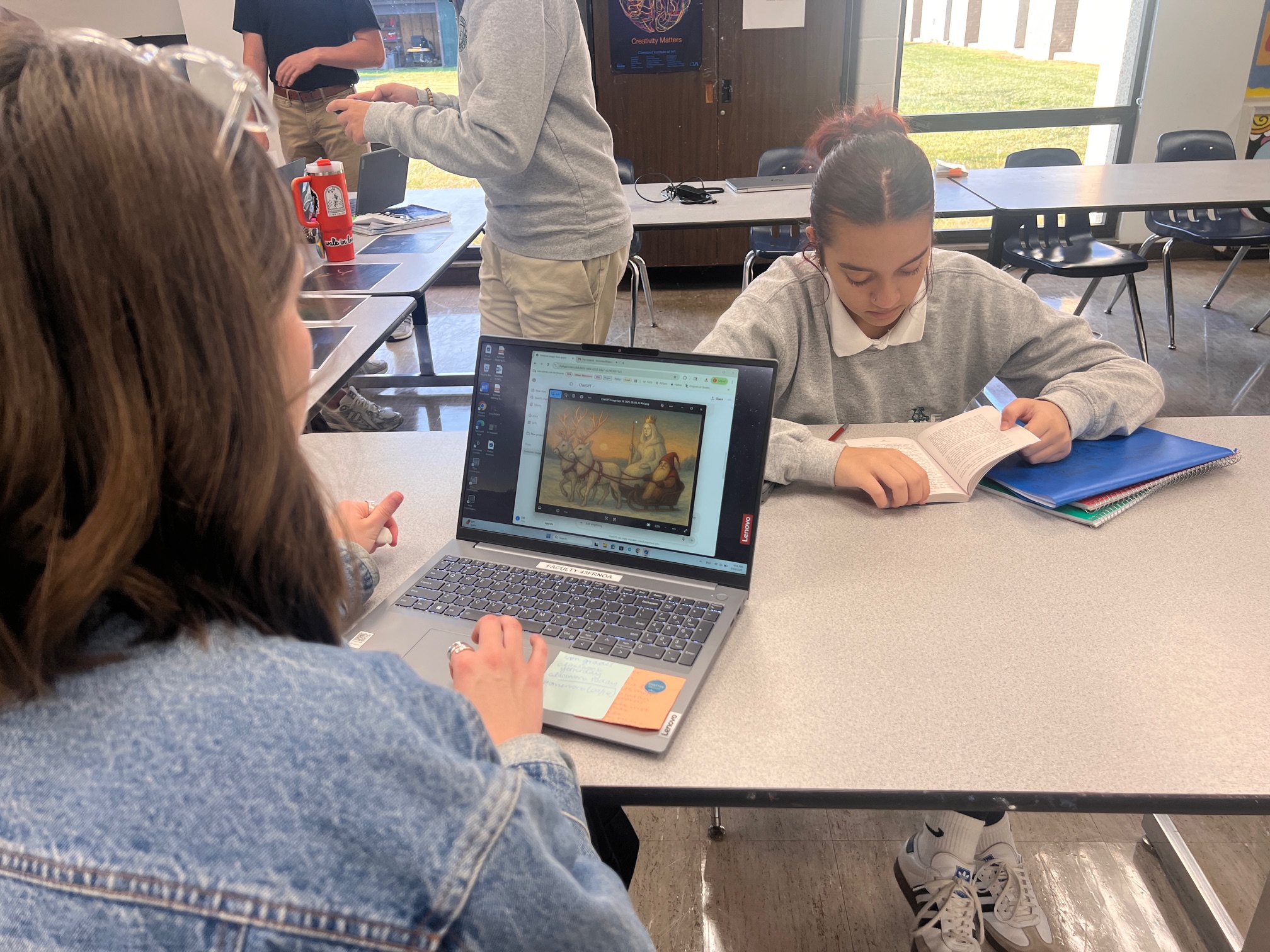 - Mr. Clark (art), Ms. Halcomb (English), and Ms. McVicker’s (English) group used AI to illustrate texts from the book. They searched for different quotes and passages and then used ChatGPT to create illustrations, and