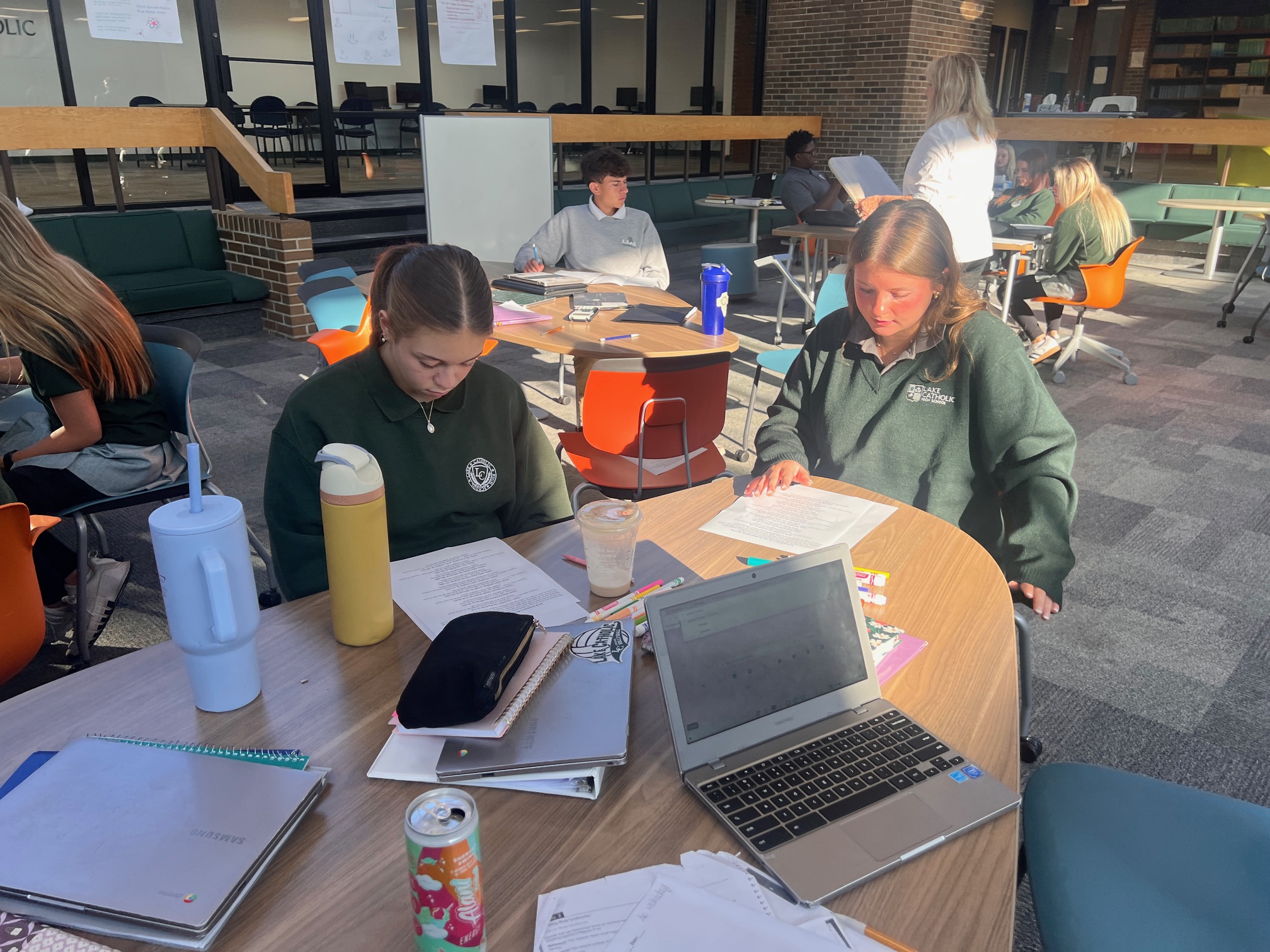 While each student did take an exam on the book during their English class, Thursday’s special session was a true cross-collaboration between departments and students as grade levels and departments were mixed and combined in various ways. And, as Frindt said, this particular book lends itself to such synergy.