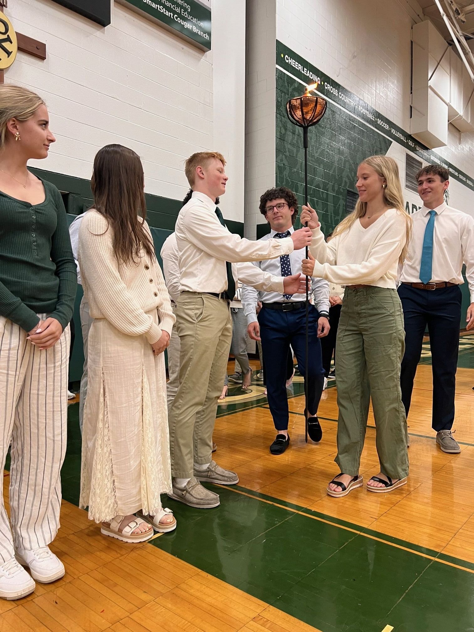 The senior class student government and the school's executive board “passes the torch” to the newly elected officers from the current junior class who will lead the student body the next school year.